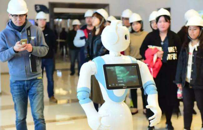 ▲ 工作人员介绍天马整体运行和企业的文化精神